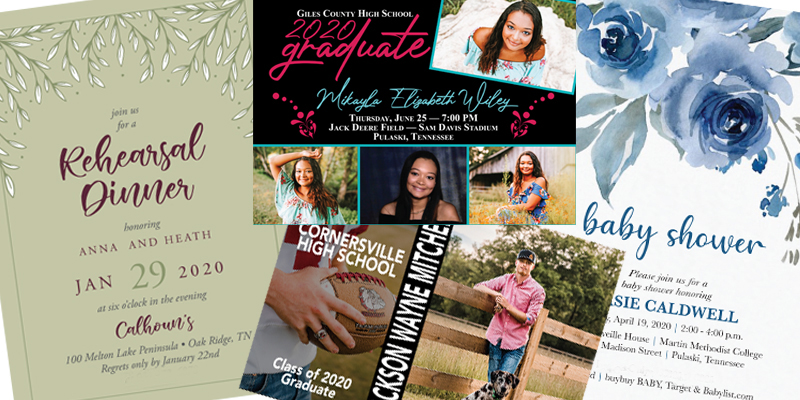 Let's Celebrate! Your special occasion deserves nothing but the best. Holley's Printing has supplied wedding, shower, party and graduation invitations to fit any budget for over sixty years. Give us your theme and our designers will customize with your favorite colors, wording, graphics, photos and more.